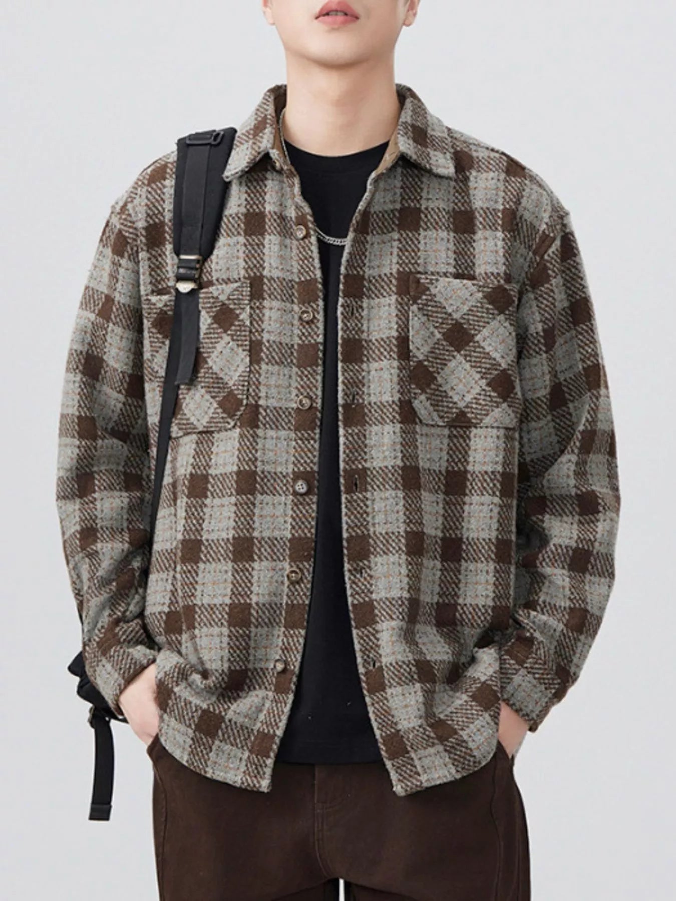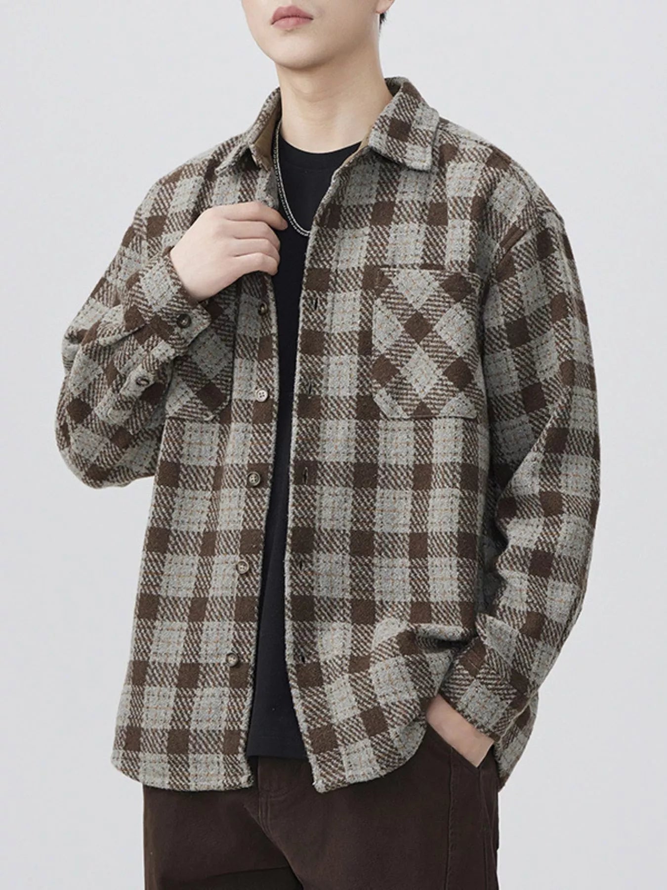Men's Plus Size Vintage Plaid Button Up Shirt