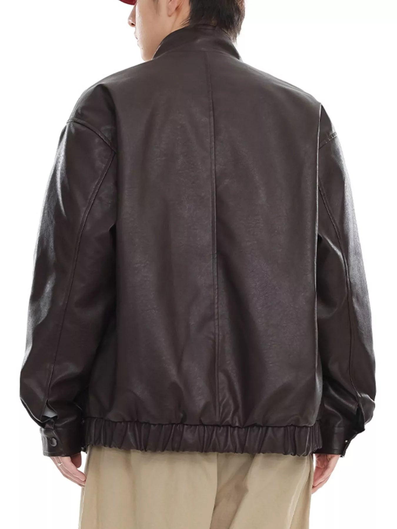 Men's Plus Size Zip Up Leather Bomber Jacket